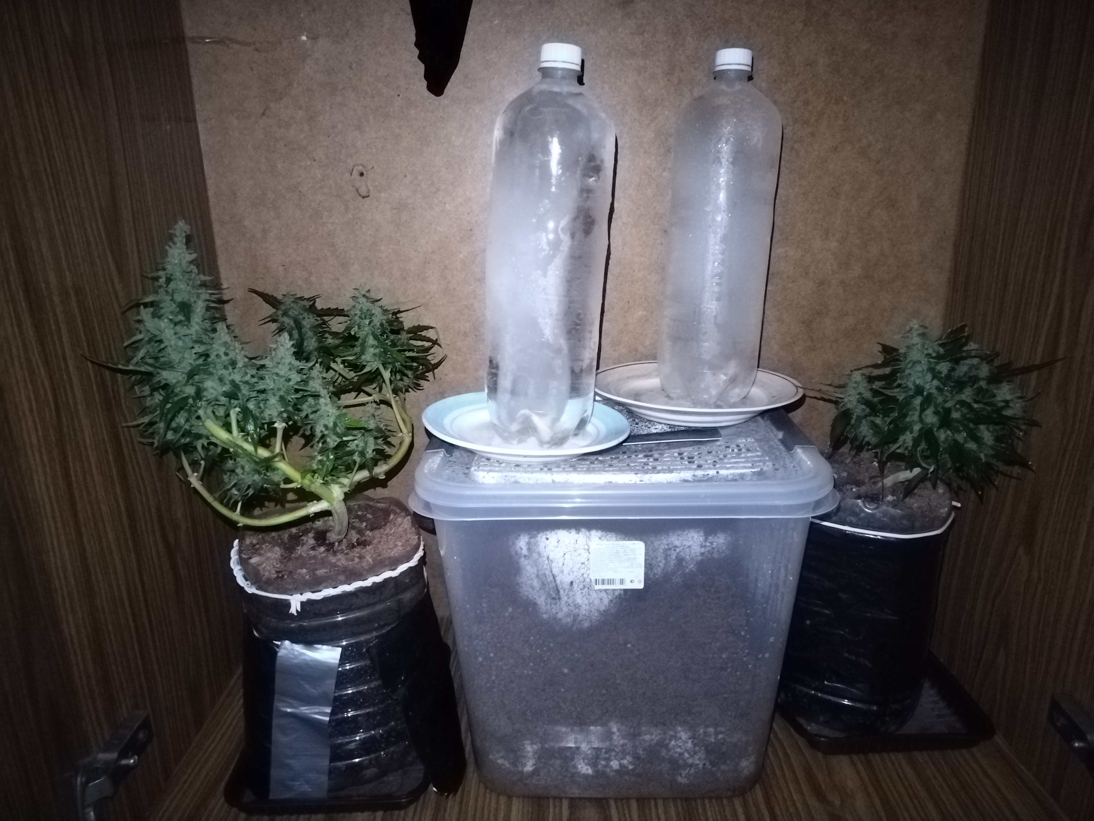 Стоял до полного созревания 3 месяца, вышел небольшой и коренастый, этакий Bonsai Bush при загибе. Небольшой урожай, хотя давал ему всё необходимое.