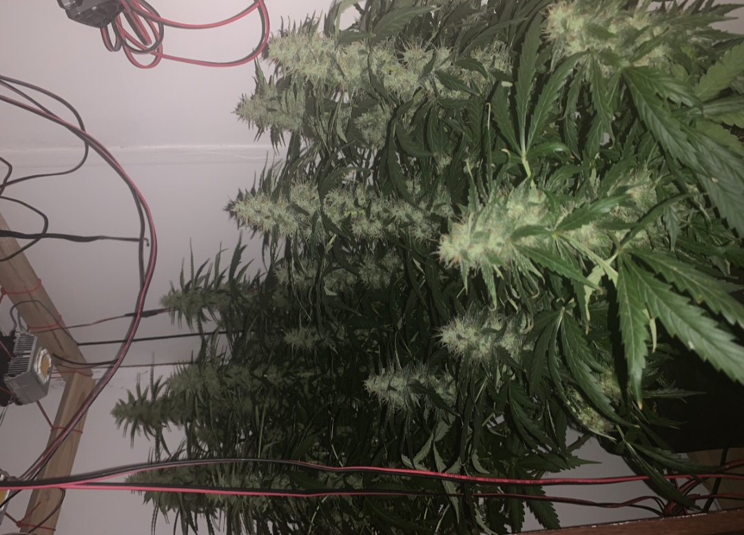 Все Гуд, цветёт и пахнет, по времени задержались , сейчас уже 72 день, Харвест недели через 3 только, поэтому тем , кто расчитывает на 2 месяца, могу с уверенностью заявить, что за 2 месяца они не успеют. По удобрениям органика биобиз гроу и блум , так же добавил калмаг от гхе в конце веги и по сей день. фосфорус плюс от хеси начал лить примерно на 2-3 неделе цвета и лью до сих пор(очень советую всем) шишки стали намного пышнее , ветки усыпаны ими сверху до низу. Удобры лил по таблице. Умные горшки(из ткани ) 15л. Полив раз в два-три дня 5л на куст. Прикрепляю фото ночной съемки , ближний куст лсд авто, дальний ак авто подарочный. В ожидании хорошего урожая, первый гров, относился к растихам как к детям со всей душой и любовью. По свету: Сам собрал 4 лампы по 50вт, просто поставил диоды на радиатор от кулера , ну и естественно кулер как охлаждение. Температура днём 29-31, ночью 20-22. Влажность на веге держал 60-80%, на цвете 30-40%. По стрессовым тренировкам делал Топпинг на 29 дне, растягивал боковые колы для лучшего попадания света. На 60 дне обрезал все нижние слабые соцветия, которым не хватает света, обрезал большие лопухи , а так же каждый раз убираю пожелтевшие листья. Трихом очень много, плотность шишек с каждым днём все больше и больше, очень многое узнал во время грова и сейчас имею познания которые пригодятся мне в будущем. Еще понял, что на самопальных лампах можно растить и не задумываться о том, что растихам мало света. Всем мир, семянычу спасибо за первый опыт, а я буду двигаться дальше.