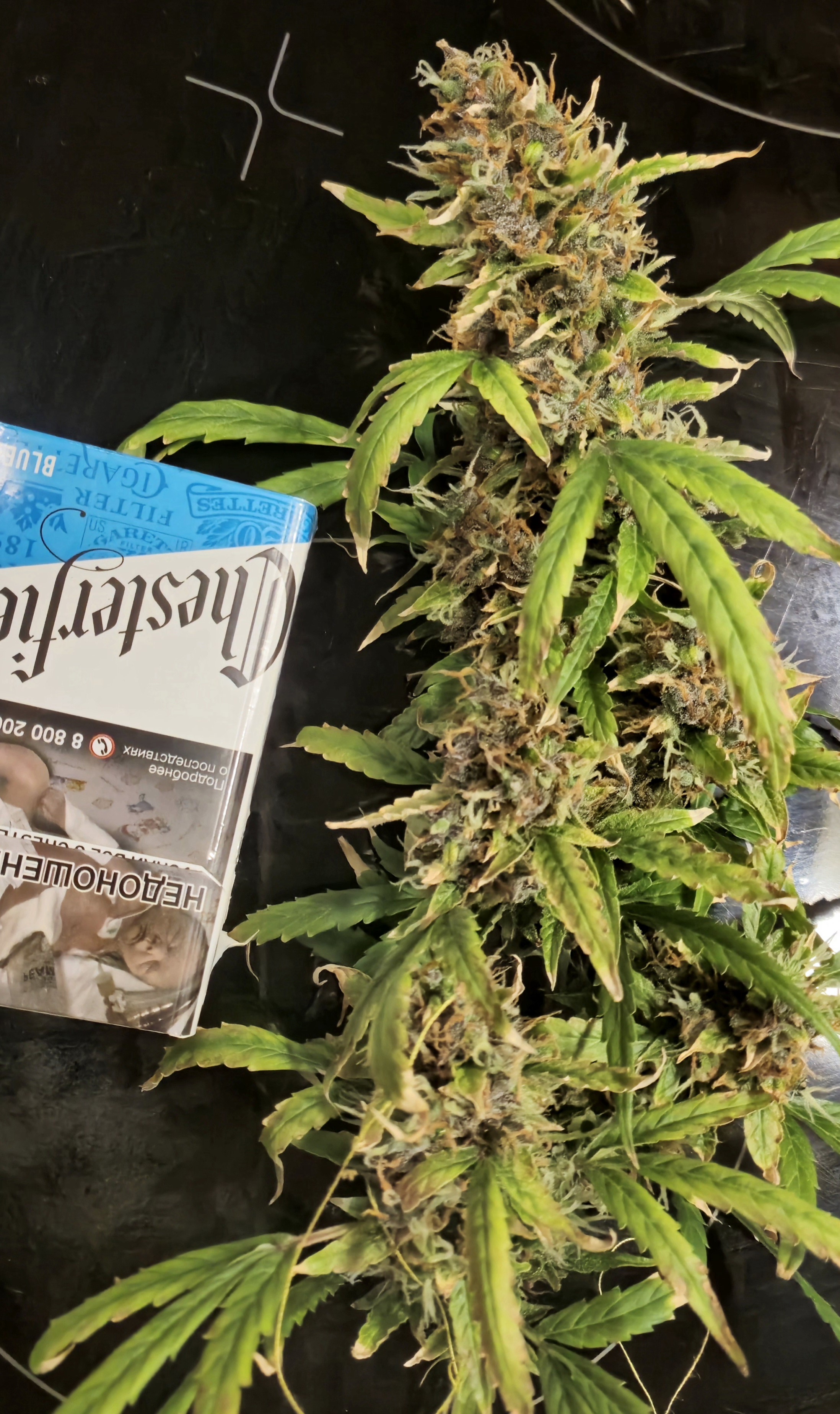97 дней, не скажу что прям вау, просто меня трудно удивить, но достойно плавно мажет 1-2 часа, обязательно ждите харвест, желательно делать LST, обрезку листьев за пару недель до харвеста и не все сразу, по 3 4 штучки, удобрение по желанию... на фото макушка... прорастание 100%, меньше суток... миру мир, дымите с головой!