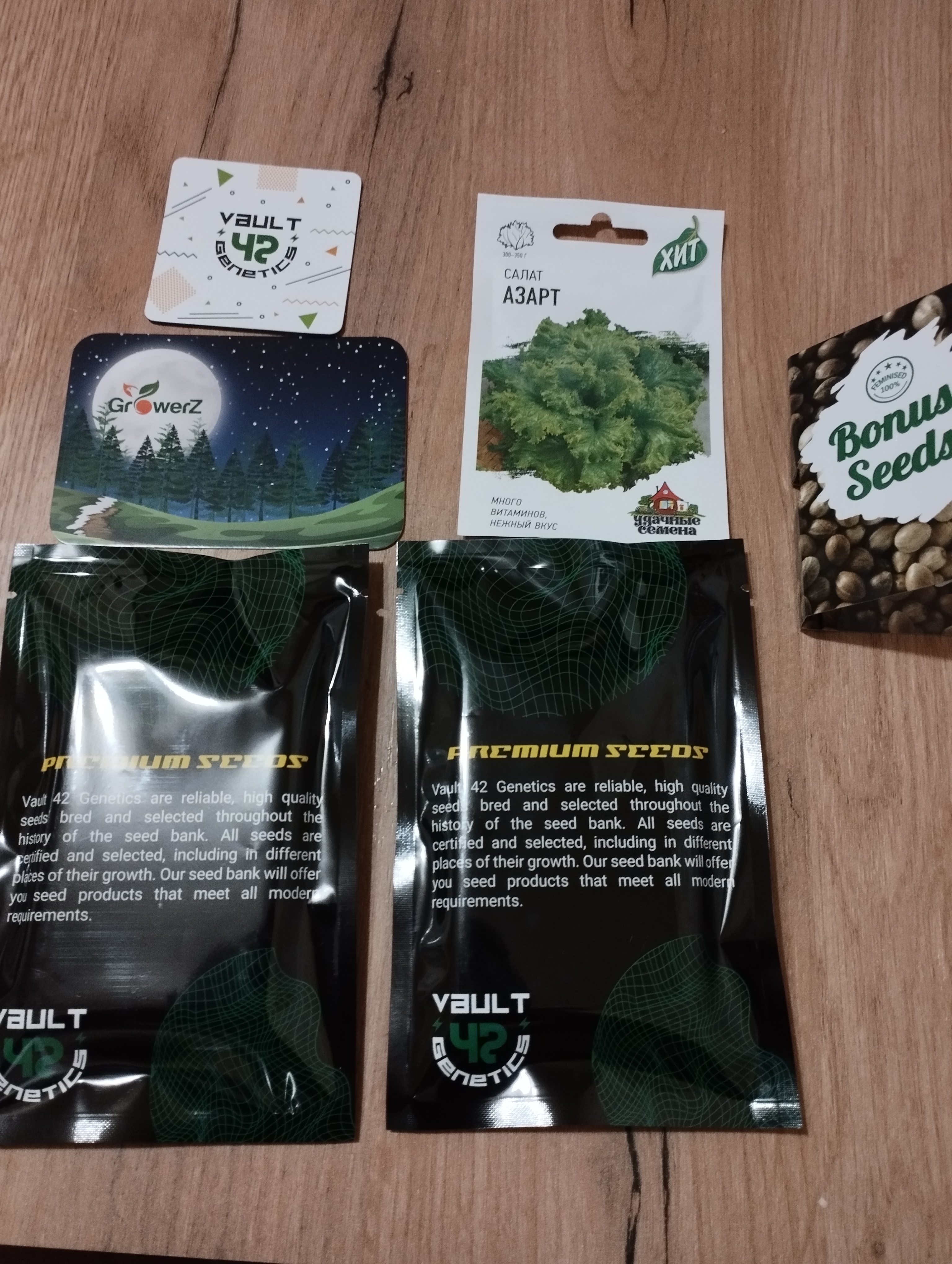 Упаковка на 5+ всё аккуратно запечатано, внутри как в аптеке, моя покупка плюс подарок и плюс подарок по промокоду, ну и в нагрузку магнитик на холодос и календарик, а ещё я нашёл там упаковку семян салата!) не знаю зачем но улыбнуло)))